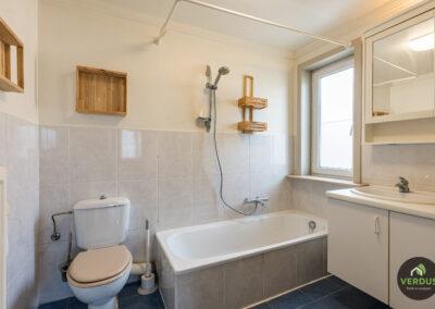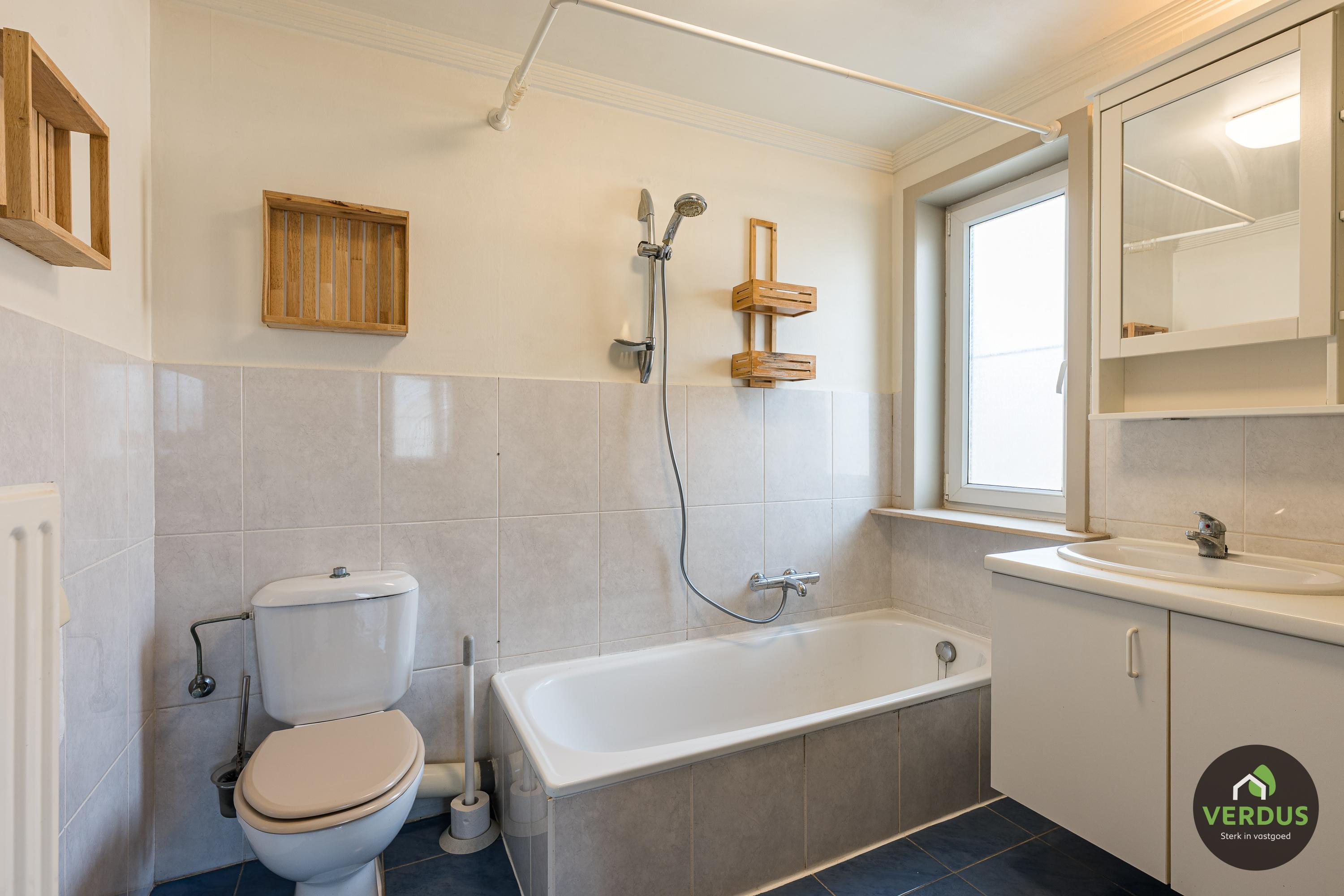 - Badkamer met lavabomeubel en plaats voor droogkast en wasmachine